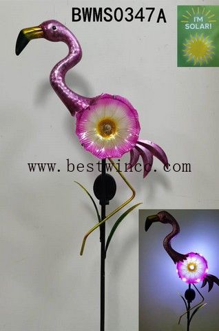 Metal die cut stake with solar light,It with 600MaH battery,It has warm light or different color at night.